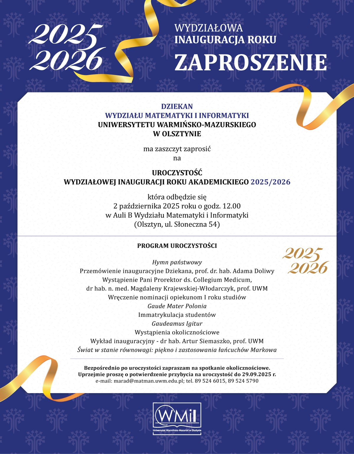 w Auli B Wydziału Matematyki i Informatyki (Olsztyn, ul. Słoneczna 54)