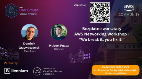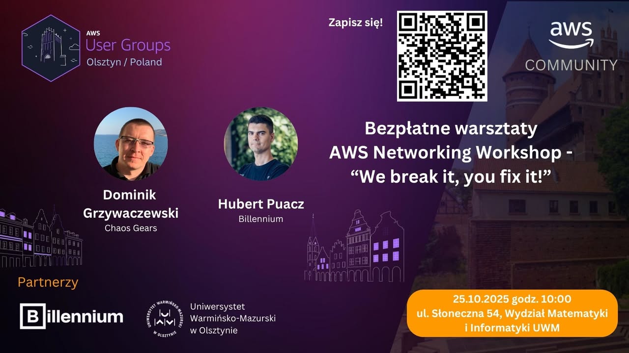 Zapraszamy na bezpłatne warsztaty AWS Networking Workshop - "We break it, you fix it". Już 25 października 2025 (sobota), o godz. 10:00 - 14:30.