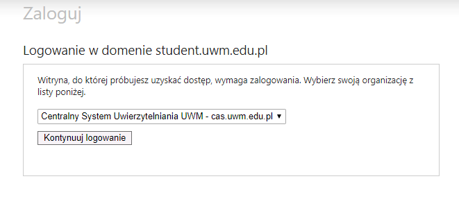 4. Naciskamy przycisk "Kontynuuj logowanie" z wybraną metodą CAS (jak na obrazie).